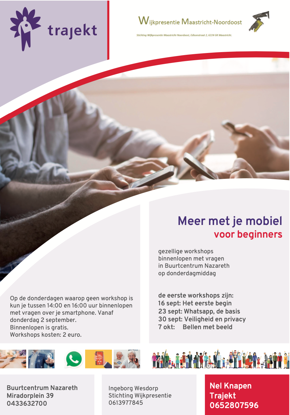 Trajekt verzorgt workshops telefoongebruik voor volwassenen. Zie de poster voor meer informatie.